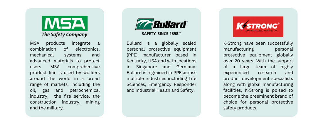 We are a distributor for a few internationally well-known brands including MSA, Bullard and K-Strong.